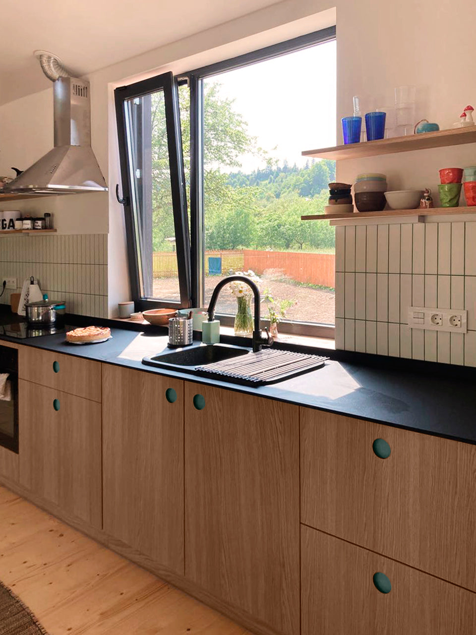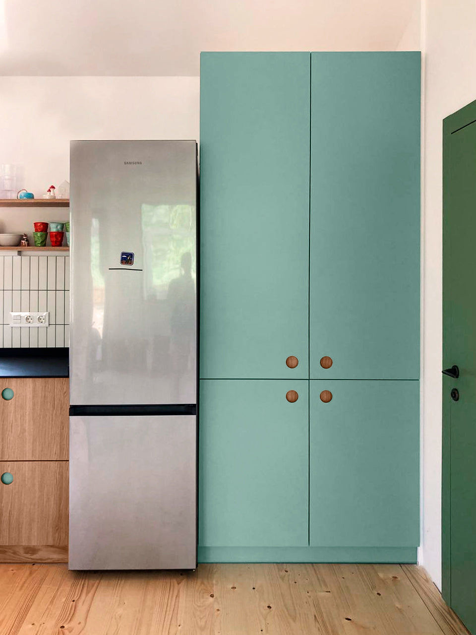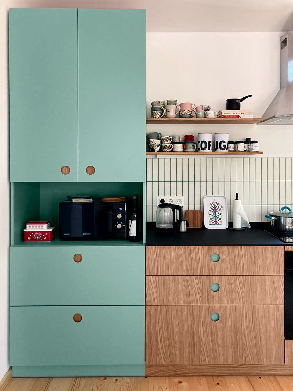 Facade material: Color jade and Wood natural oak