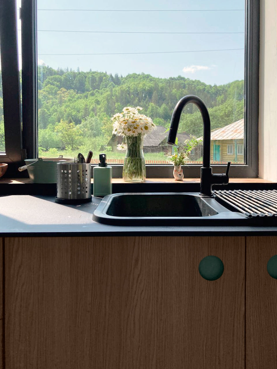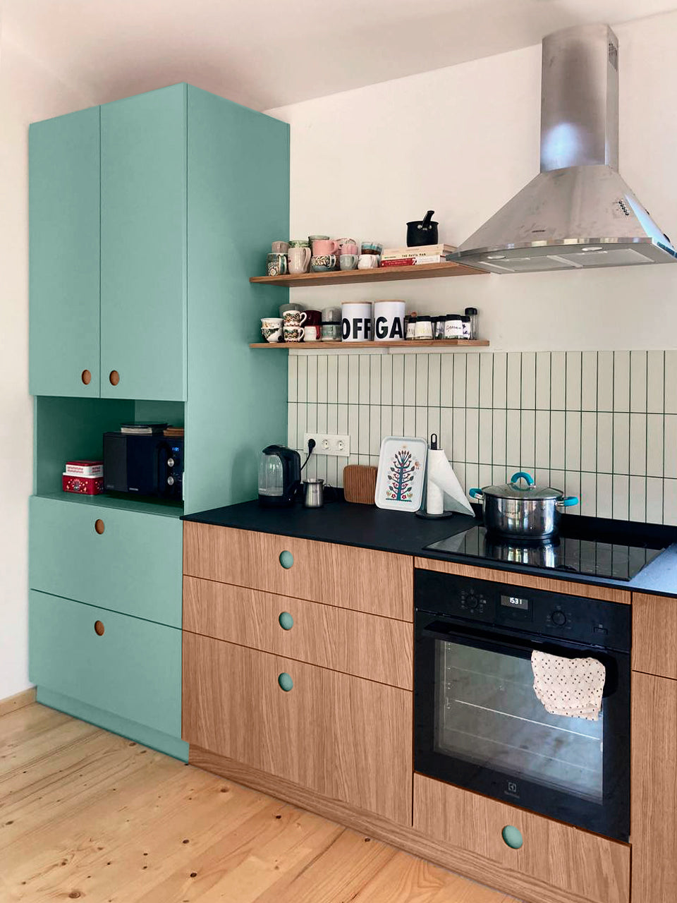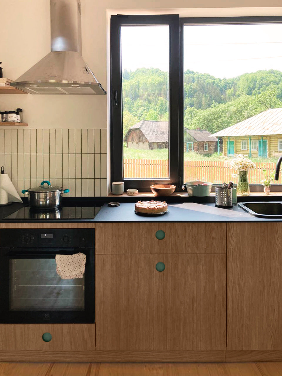 Facade material: Color jade and Wood natural oak